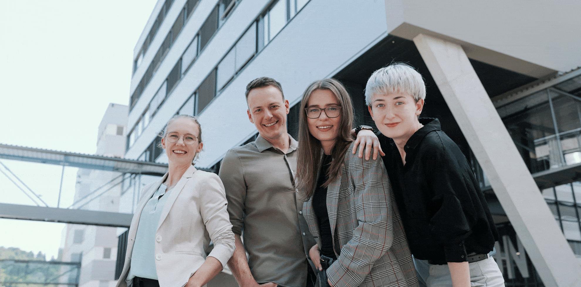 Vi er alle en del av det samme teamet. Ettersom KNAPP-konsernet er verdensomfattende og oppdelt i mange datterselskap, er grenseoverskridende samarbeid en del av hverdagen. Kundeprosjektene gjennomføres med personer fra ulike deler innen konsernet, noe som gjør vi-følelsen både sterkere og viktig.